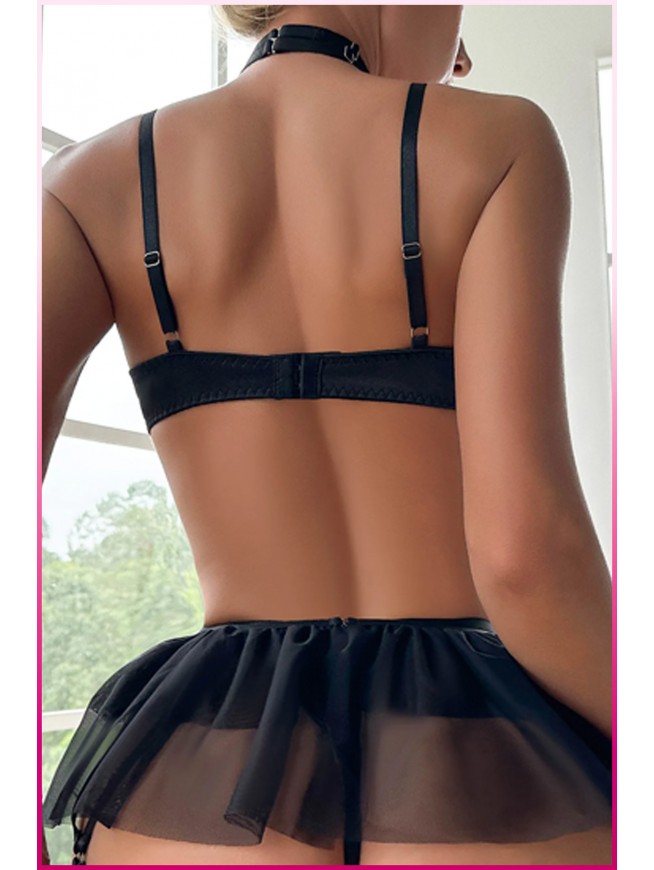 - Choker Yaka: Boynunuzda asil bir dokunuş sunan halka detaylı siyah choker, takımınızı tamamlar.