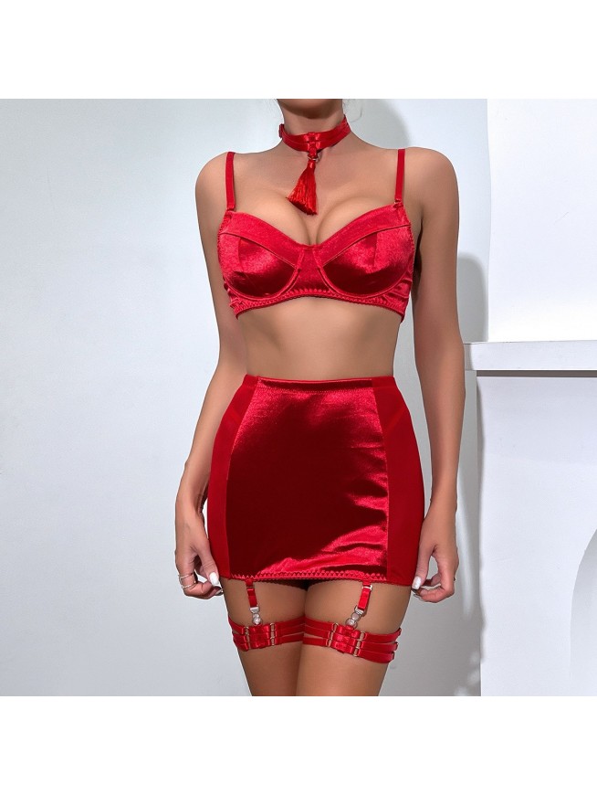 Kadın İthal Saten Etekli Sexy Fantazi Jartiyer Takım