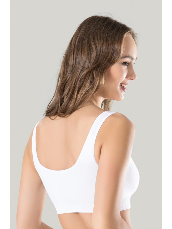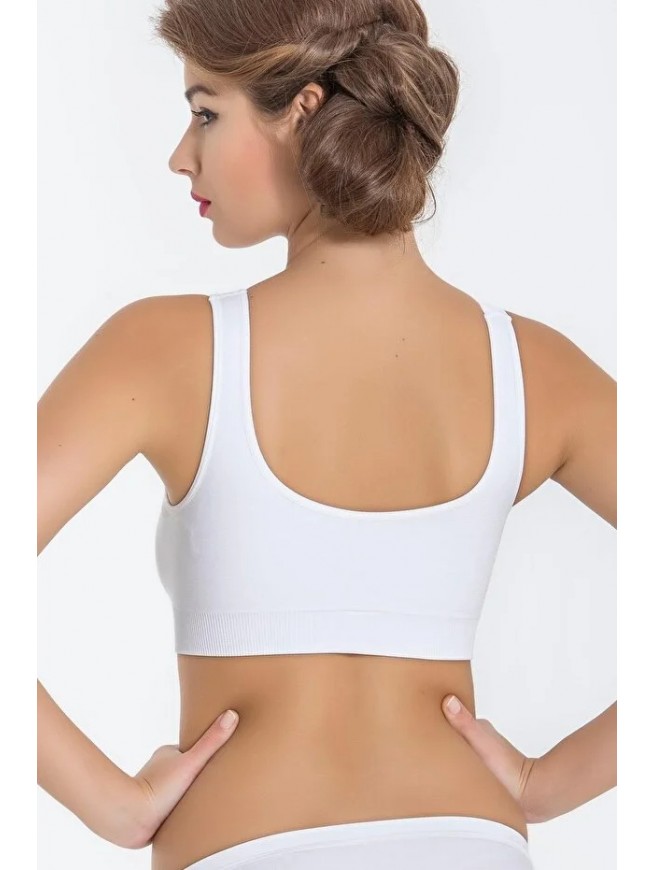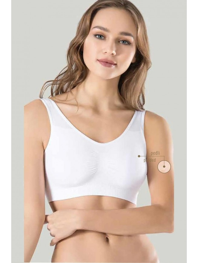 Kadın Beyaz Kalın Askılı Çıkarılabilir Pedli Örme Seamless Dikişsiz Basic Büstiyer