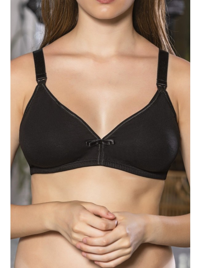Siyah Anne İçin Konforlu Emzirme Sütyeni,PamukluTelsiz,Süngersiz, Mom Bra