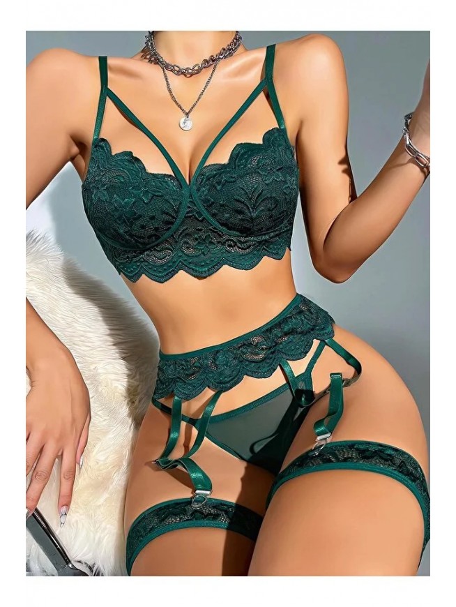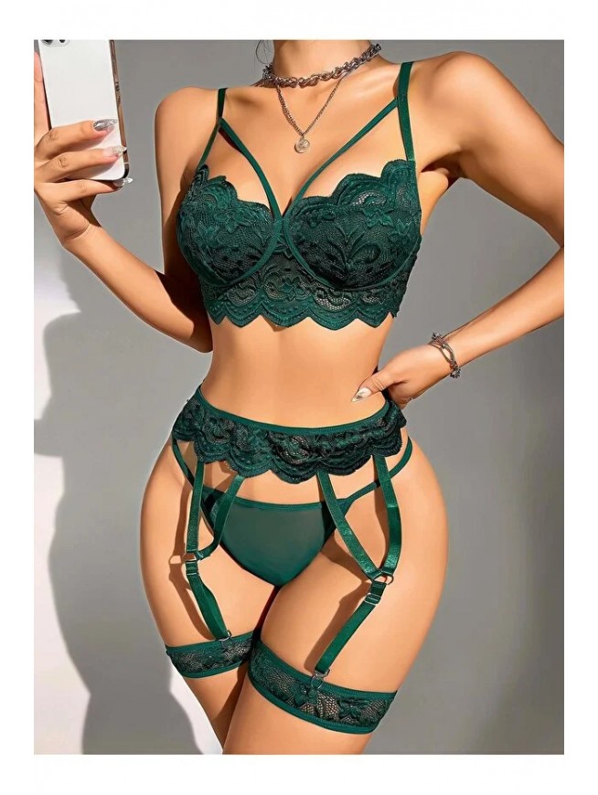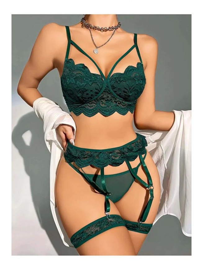Kadın Yeşil Dantel Detaylı Jartiyer Takım