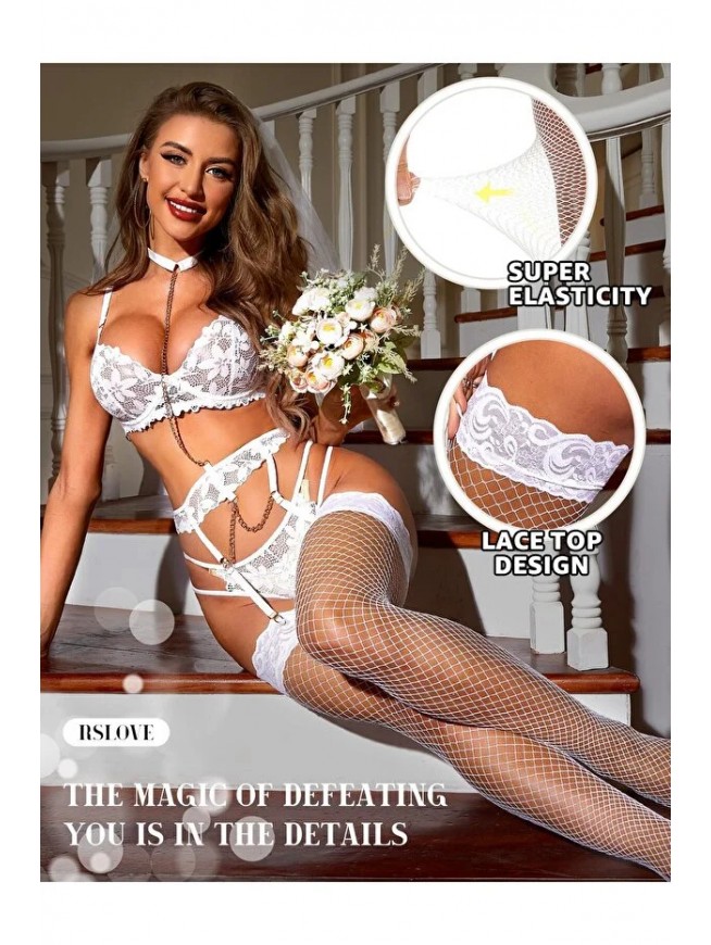 Kadın Beyaz File Silikonlu Jartiyer Çorabı