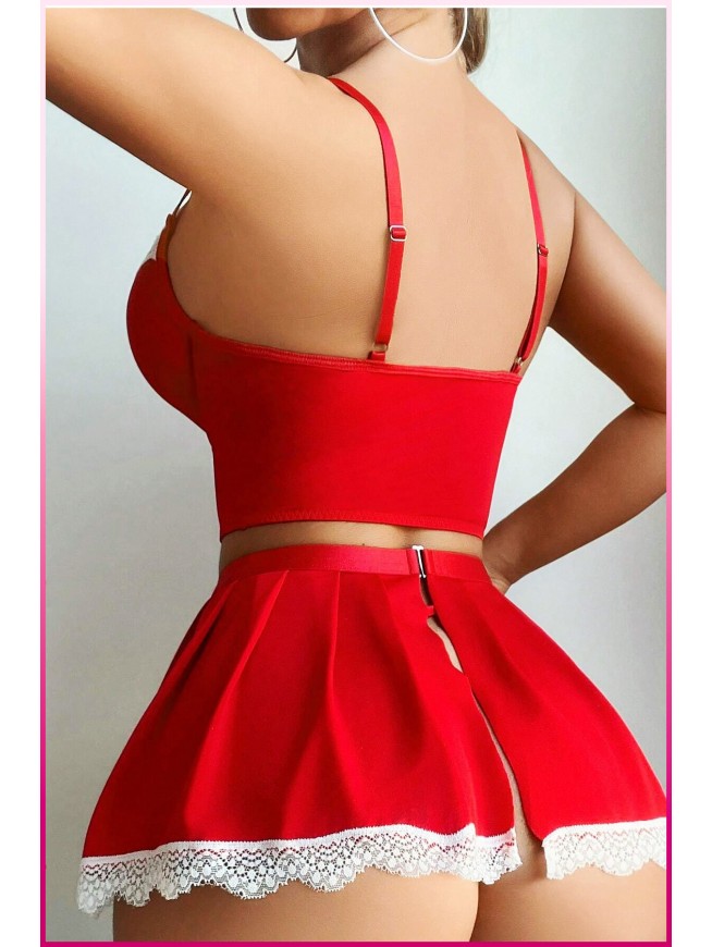 - Fırfırlı Mini Etek: Transparan beyaz dantel detaylı kısa etek, hareketli ve çekici bir görünüm kazandırır.