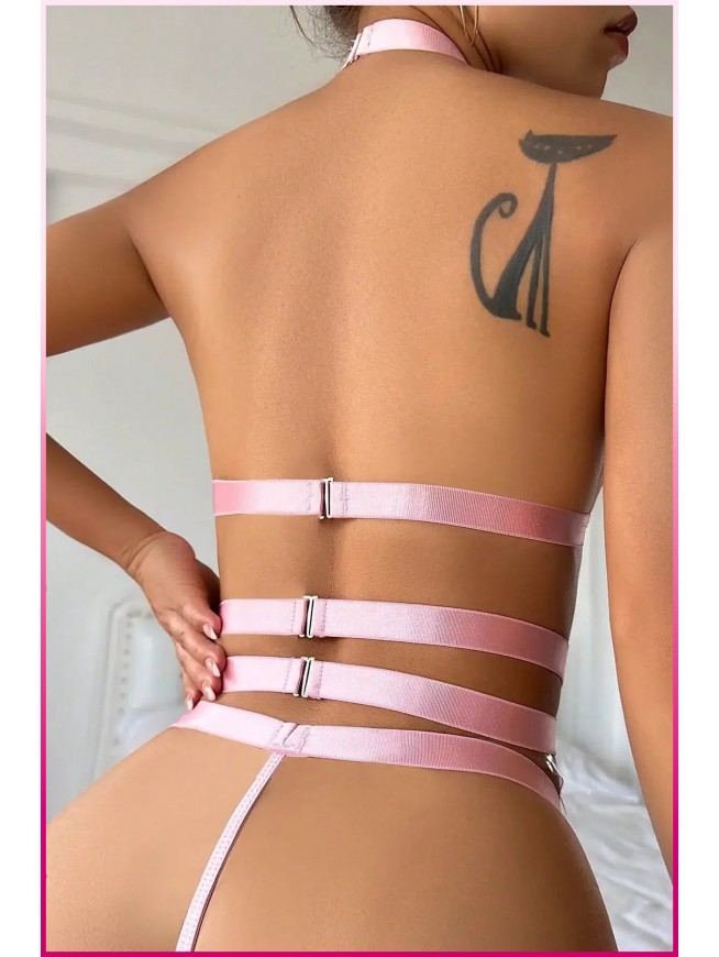 Şıklığı ve cesareti bir araya getiren bu pembe dantel detaylı iç çamaşır seti, özel tasarımıyla göz kamaştırıyor. Kalp figürleri ve zincir aksesuarlarıyla dikkat çeken bu ürün, romantik anlarınızı unutulmaz kılmak için tasarlandı.