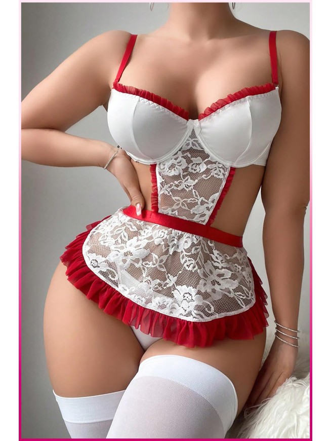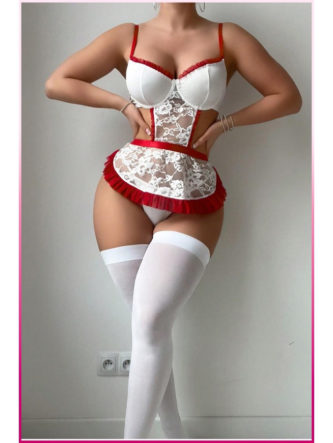 Beyaz Balenli Seksi Hizmetçi Kostüm